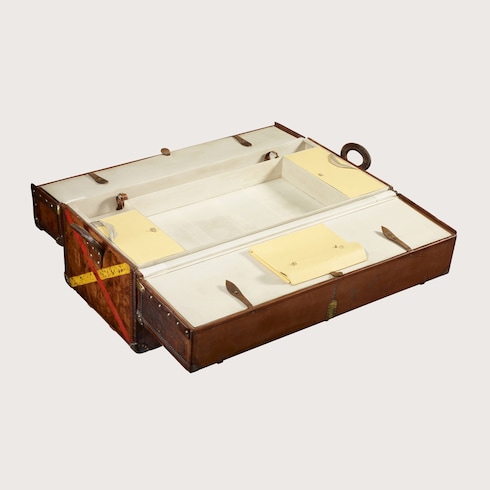 それから間もなくルイ・ヴィトンは、パリのマレシャル氏のアトリエで重宝される職人となりました。これが、ルイ・ヴィトンの極めて特殊な職業の原点であり、木箱、そして後にトランクを顧客の要望に沿って特別注文で作る彼の職人的な製造業者としての経歴のはじまりでした。ルイ・ヴィトンはマレシャル氏のもとで17年間働き、その後ヴァンドーム広場からほど近い、ヌーヴ・デ・カプシーヌ通り4番地に自らのアトリエを開きました。
