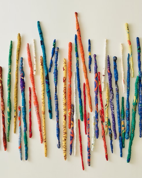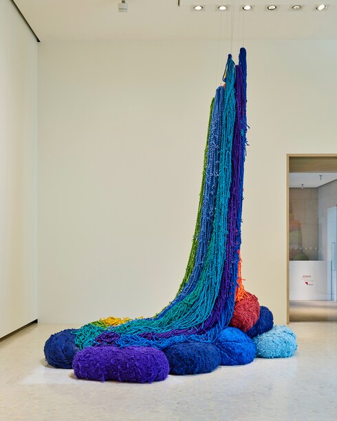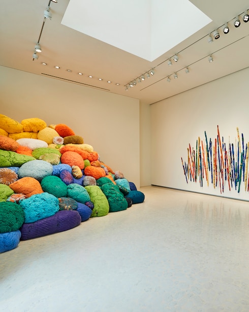 アーティスト シーラ・ヒックスは美術と応用美術の垣根を取払い、手織りの作品やソフト・スカルプチュア、巨大なインスタレーションの中で、モダニズムや抽象主義、西欧外の伝統とサヴォアフェール(匠の技)をシームレスに融合させています。彼女は、ウールやナイロン、シルク、リネン、そしてコットンなどで構成される彫刻や空間を通して、鑑賞者が歩き回れる魅力的な雰囲気を演出。ヒックスの代表作の中から、韓国初公開となる《Atterrissage》(2014)、《Bâtons de Parole》(2016)、《Another Break in the Wall》(2016)をご堪能ください。