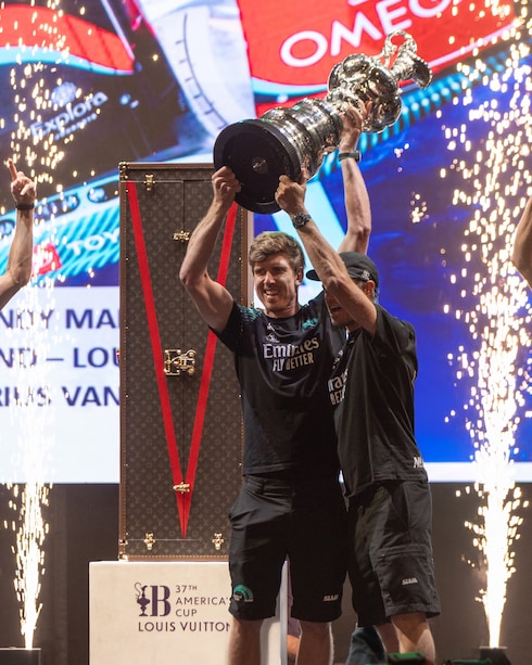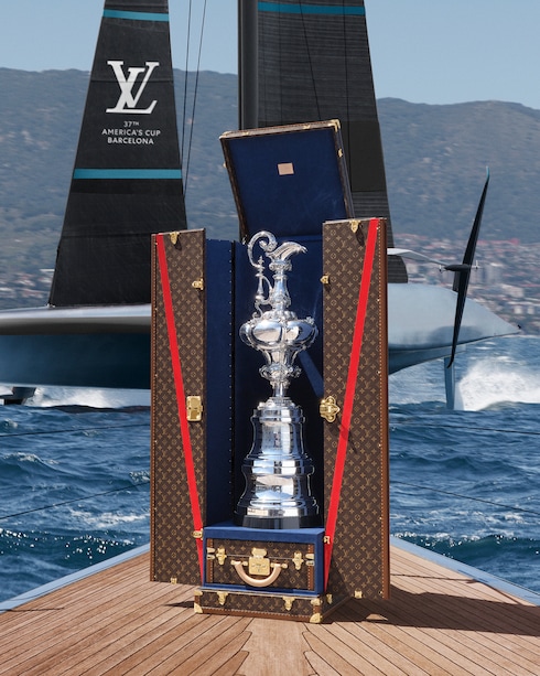 ルイ・ヴィトンは、アメリカズカップのタイトルパートナーとして復帰した第37回大会で、伝説の旅へのコミットメントを新たに示しました。今年は、2つの特別なトロフィー・トランクのデザインを発表──1つは本大会の挑戦者を決めるルイ・ヴィトン カップのトロフィー用のアイボリーのライニングが付いたもの。もう1つはアメリカズカップの勝者であるエミレーツ・チーム・ニュージーランドに贈られた象徴的なトロフィー「オールド・マグ」のためのトランク。クラフツマンシップと伝統が融合した両トランクは、「Victory(勝利)」と「Vuitton」を意味する「V」のペインティングが施されたアイコニックなモノグラム・キャンバスをまとっています。