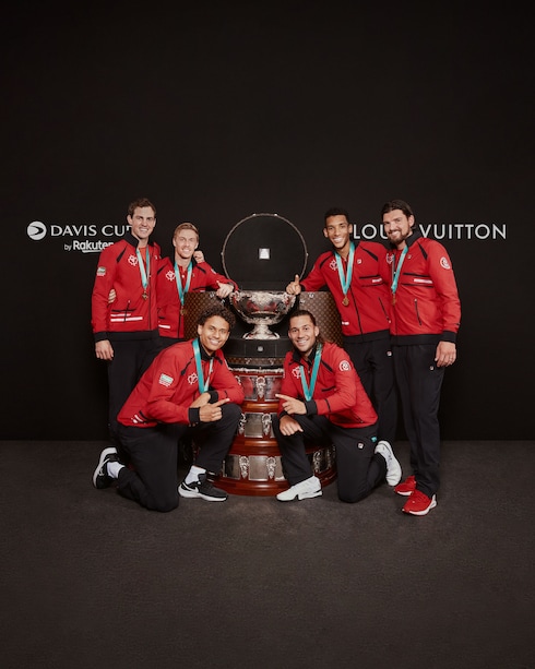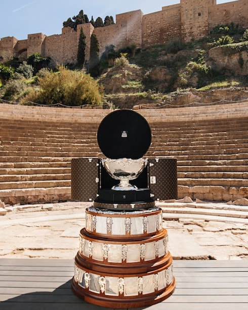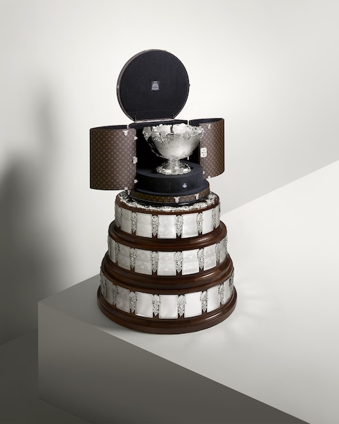 2022年、「デビスカップ」のトロフィーは、ルイ・ヴィトンの特製トロフィー・ケースに収められて贈呈され、メゾンと権威ある本大会のコラボレーションは3年目を迎えました。メゾンを象徴するモノグラム・マカサー キャンバスで覆われたユニークな円形のトランクは、特大の台座に、上部と両側を開いた状態で置かれ、伝説のトロフィーを完璧に魅せました。
