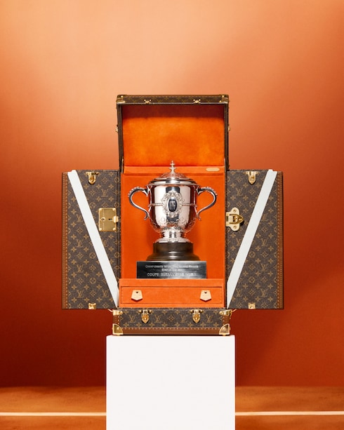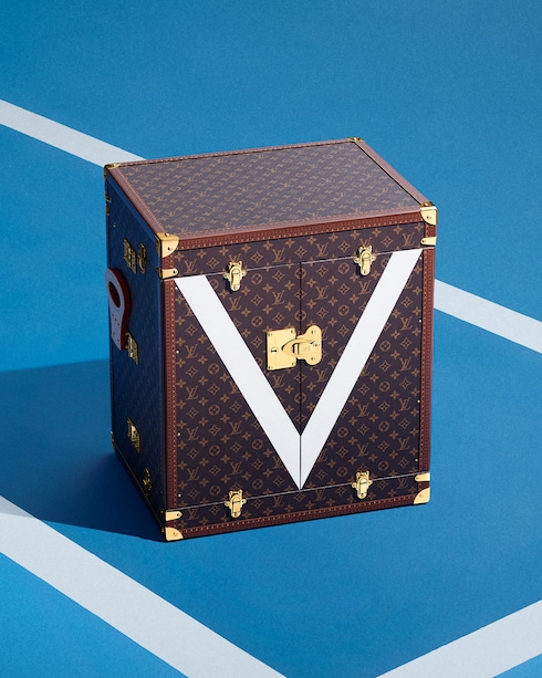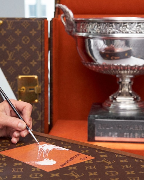 ルイ・ヴィトンは「ローラン・ギャロス 2017」と「ローラン・ギャロス 2018」において、フランステニス連盟と協働。女子シングルス、男子シングルス共に、決勝戦開始前にメゾンの特注ケースに収められたトロフィーがコートサイドで披露されました。本コラボレーションでは、テニスコートのクレー(赤土)を彷彿させるテラコッタカラーのライニングを施したモノグラム・キャンバスのトランクに、同じくテニスコートのラインを想わせる「V」が仕上げのアクセントとしてあしらわれています。