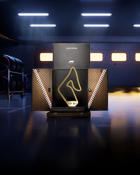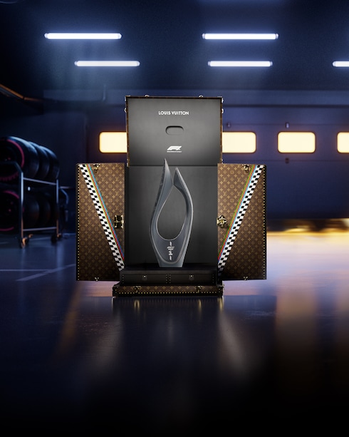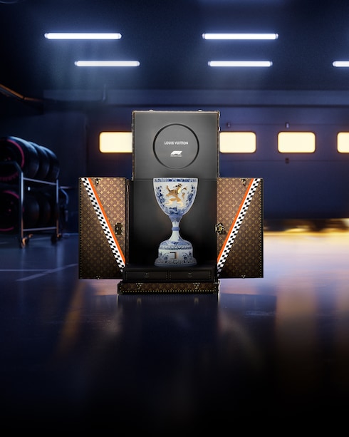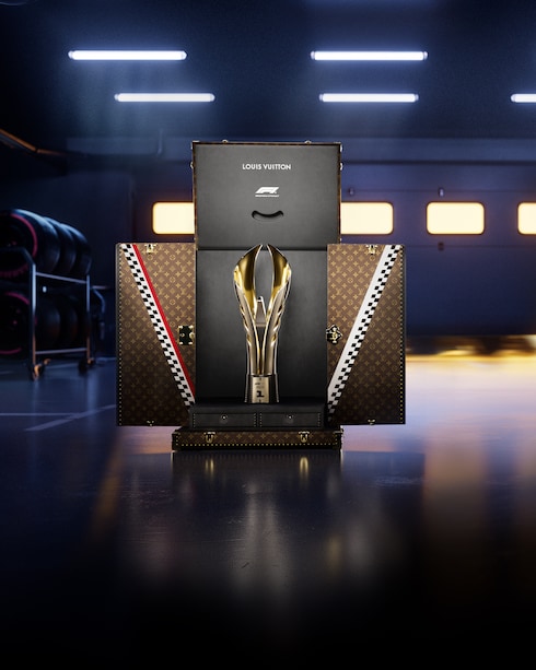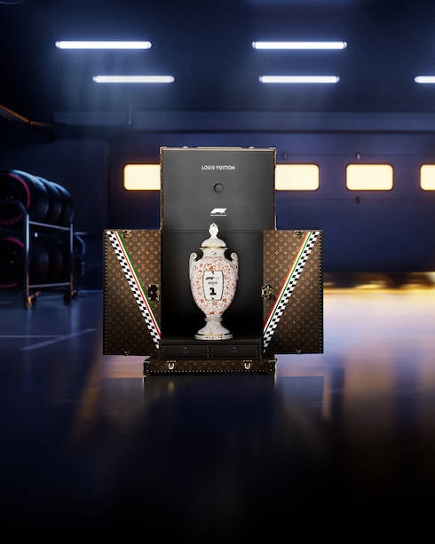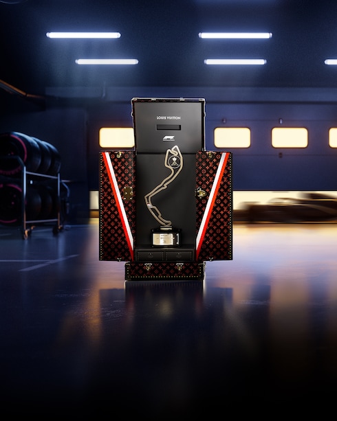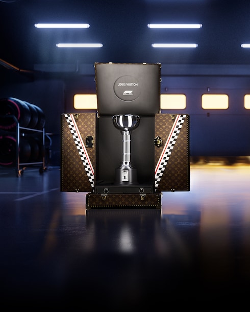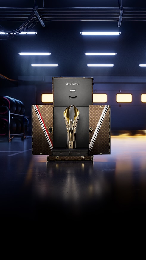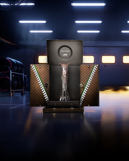 ルイ・ヴィトンはフォーミュラ1®と10年間のパートナーシップを結び、主要なグランプリレースのために特注のトロフィー・トランクを製作。メゾンの歴史ある卓越性を示すそれぞれのトランクには、伝統と革新が融合しています。モータースポーツの最高峰チャンピオンシップが持つ興奮、名誉、そして究極の勝利を讃え、モノグラム・キャンバスには、サーキットのフィニッシュラインを彷彿とさせるデザインと共に、「勝利(Victory)」を意味する「V」があしらわれています。