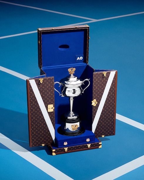 長きにわたるテニスへのコミットメントの一貫として、ルイ・ヴィトンは全豪オープン2025で、2年連続となるオフィシャルトロフィー・トランク パートナーを務め、2つのモノグラム・キャンバスの特注トランクを製作。その中に収められるのは、同大会で女子シングルス部門の優勝者に贈られるダフネ・アクハースト・メモリアル・カップと、男子シングルス部門の優勝者へのノーマン・ブルックス・チャレンジ・カップ。女子と男子の決勝戦およびその権威ある表彰式に登場する2つのカスタマイズされたトランクのライニングには、大会のカラーコードに合わせたブルーのマイクロファイバーを採用。さらに蓋の裏側には、全豪オープンのロゴ「AO」がホワイトであしらわれています。