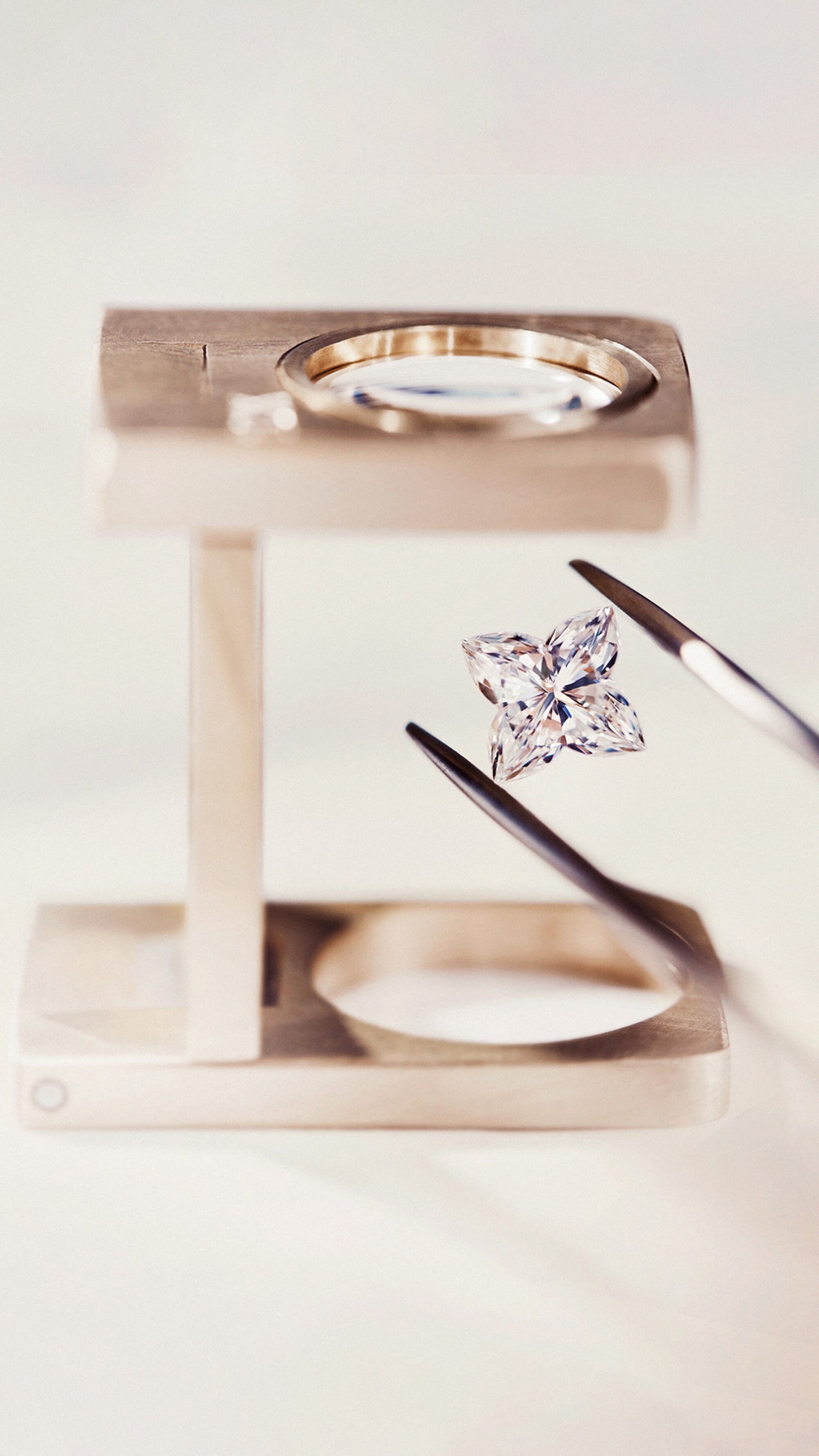 最高品質のダイヤモンドのみを提供することを目指し、ルイ・ヴィトンの品質管理専門の職人は、カットや研磨だけでなく、カラーやクラリティといったダイヤモンドの特徴も検証しています。
