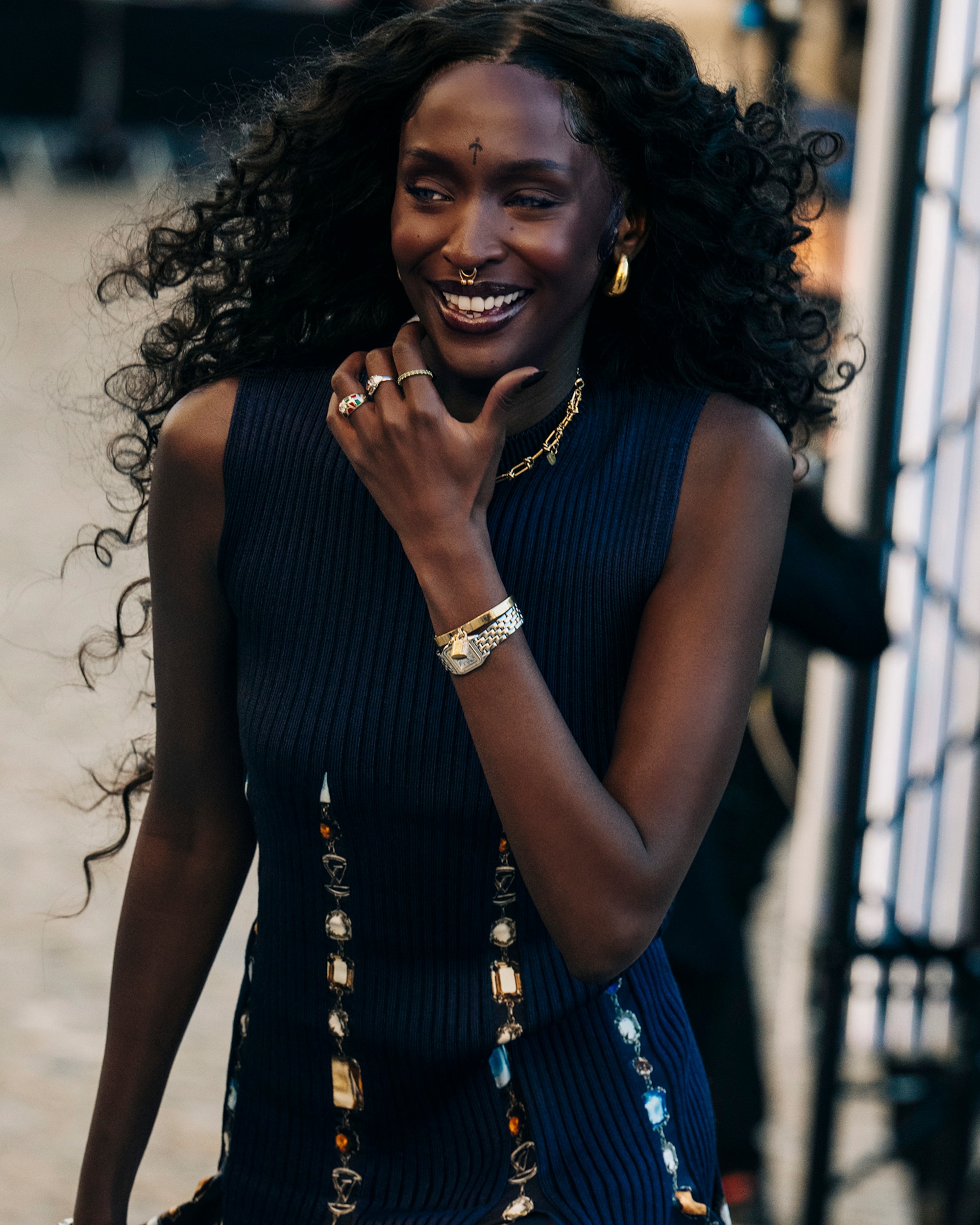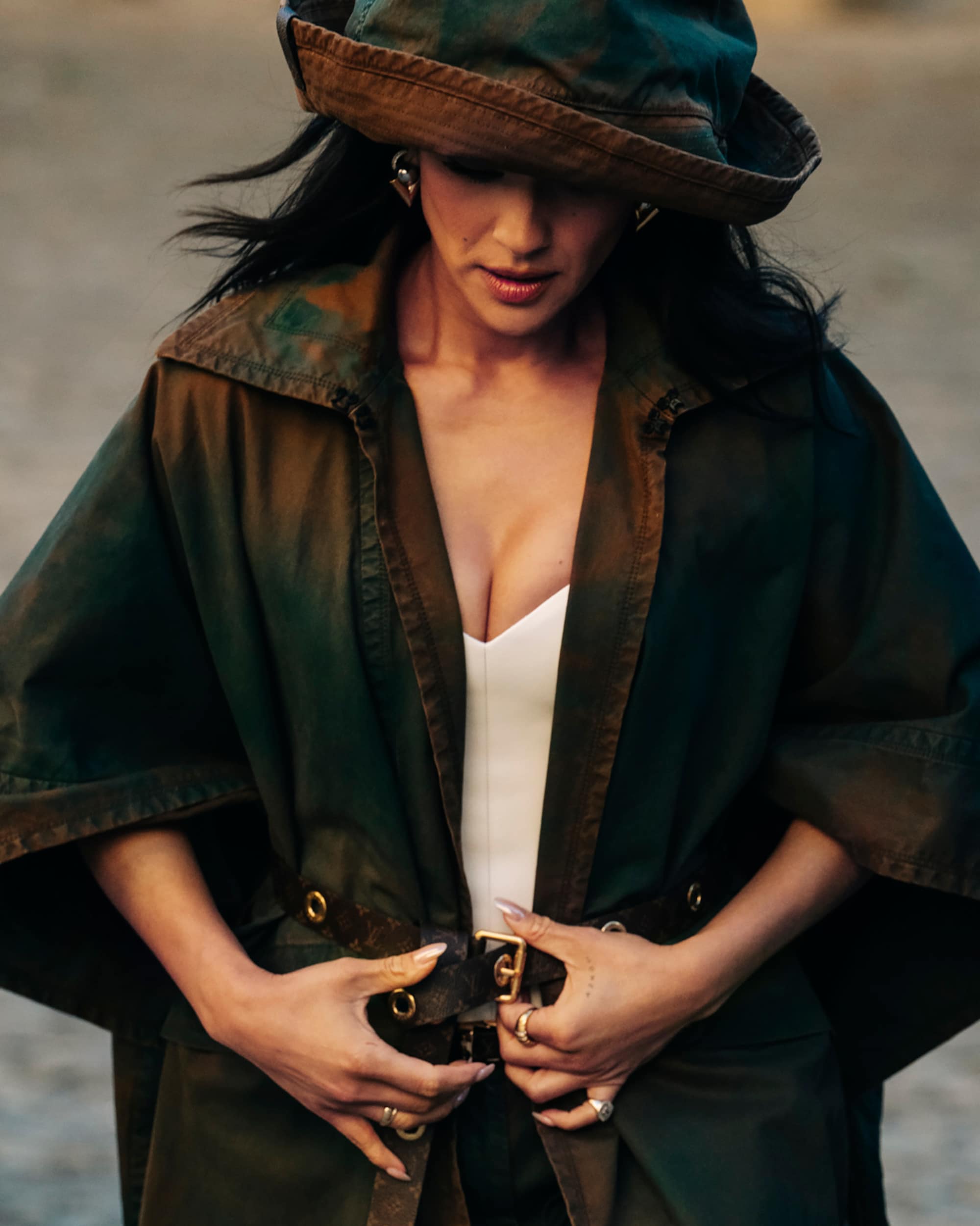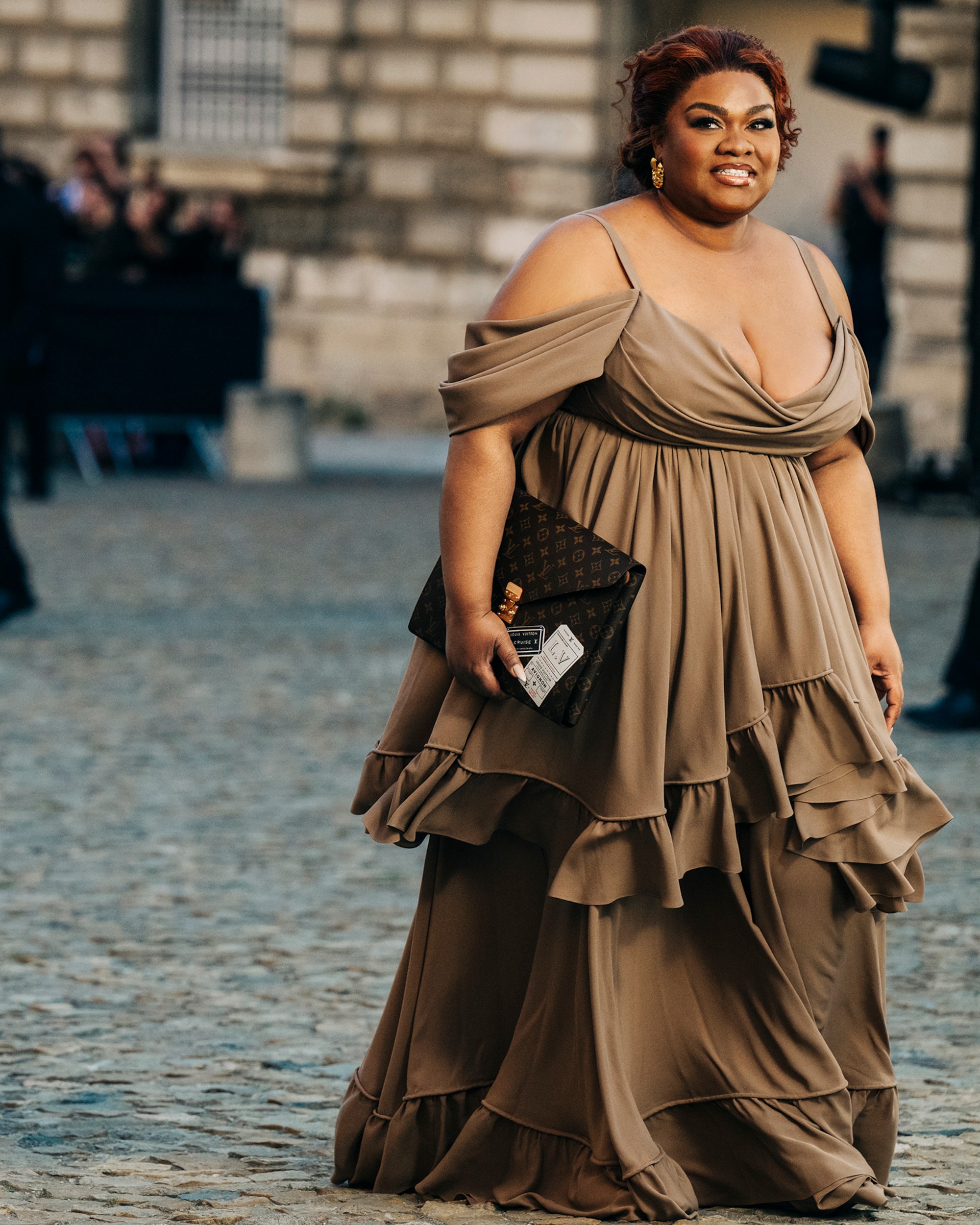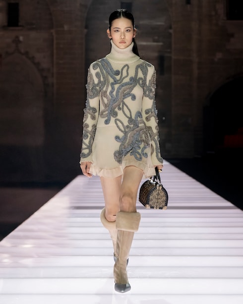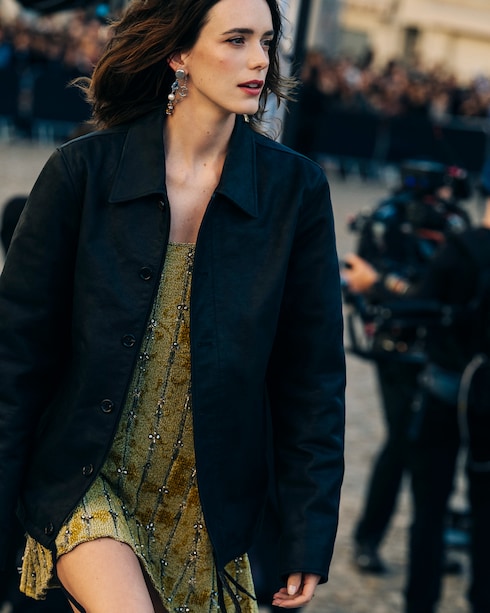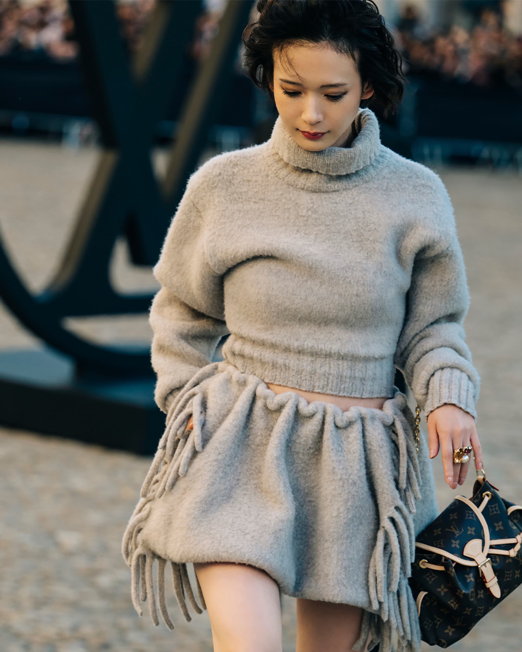 舞台芸術にオマージュを捧げた本コレクションで、ニコラ・ジェスキエールは中世の壮麗さとグラムロックの華やかさが交錯するドラマティックな時代の衝突を表現。先駆的なルイ・ヴィトン ウーマンの魅力を鮮やかに描き出しています。