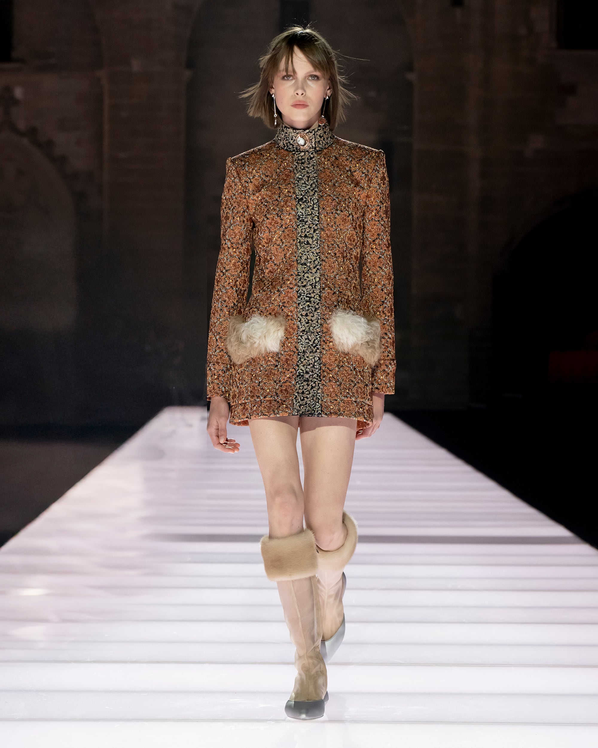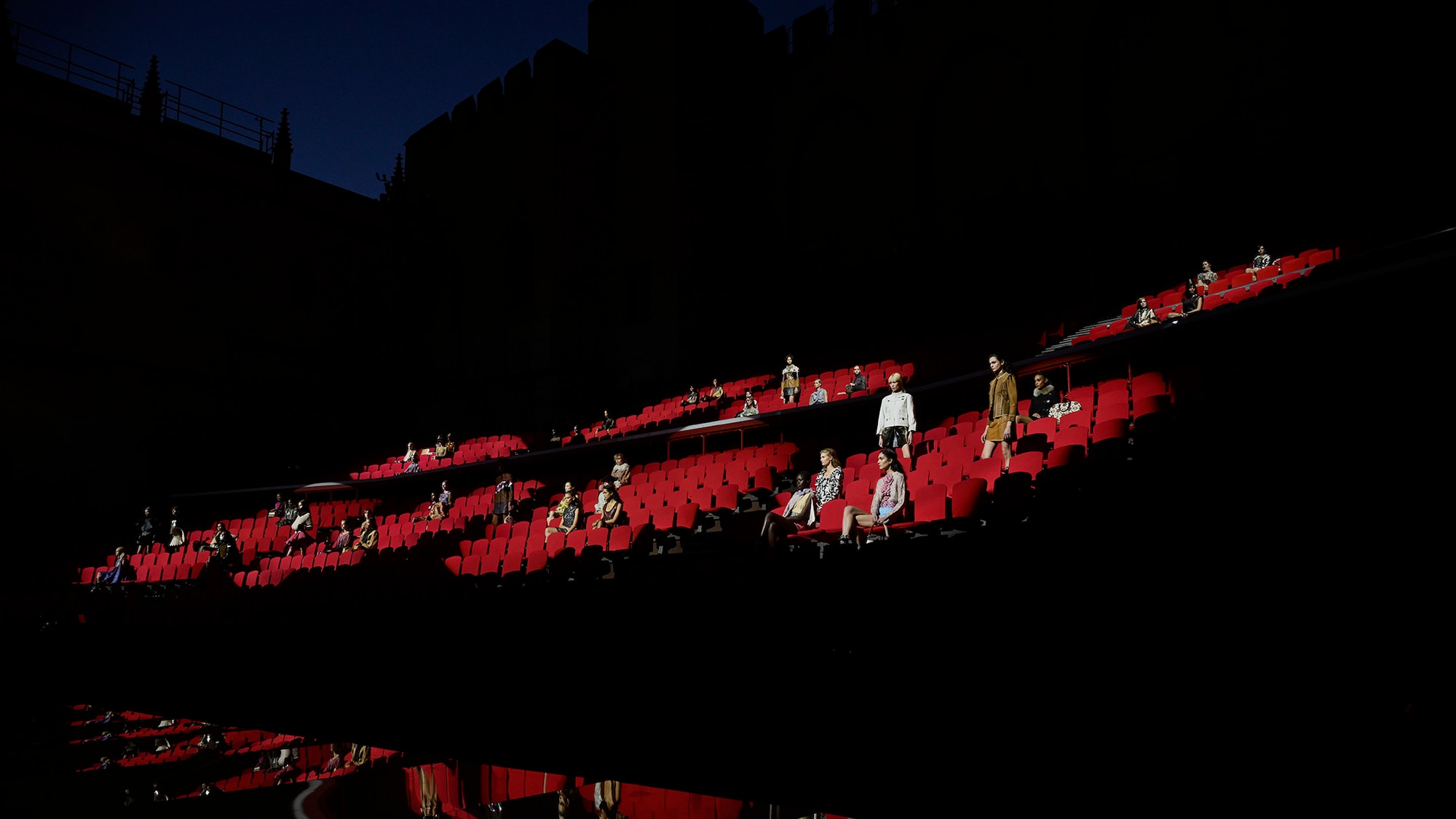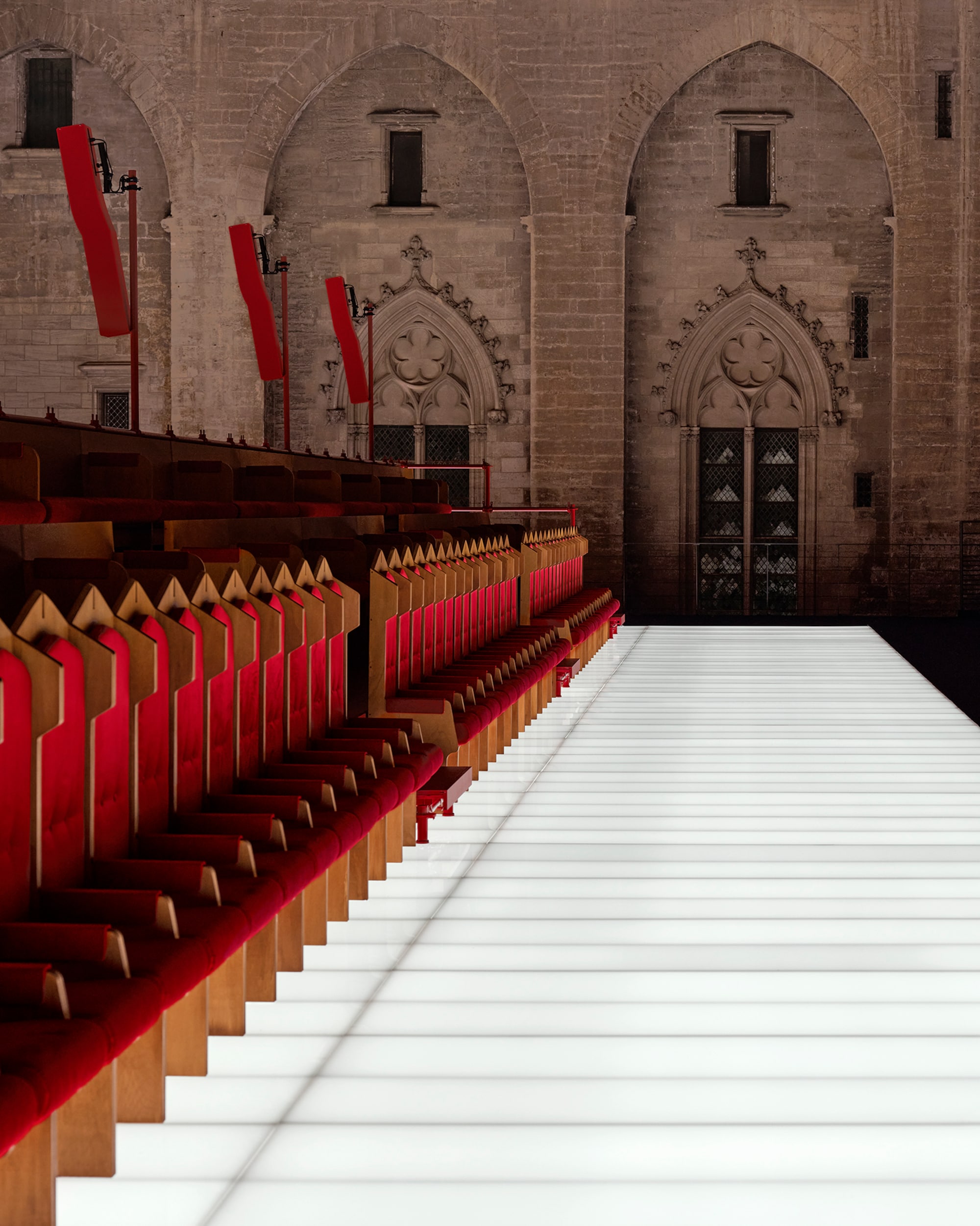偉大な歴史を誇るアヴィニョンのパレ・デ・パプ。中世の荘厳な石壁に囲まれた空間を舞台に、ニコラ・ジェスキエールはファッションが持つ表現力と人々の感情を揺さぶる力について探求します。