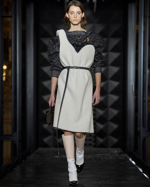 フレンチ・スタイルのサルトリアルコードを探求する2023秋冬ウィメンズ・コレクションは、パリジャンシックの謎めいた概念に息吹を吹き込みます。ブーツをパンプスに、ニットと見紛う複雑な刺繍、曖昧になる知覚と現実の境界線──象徴的なバッグやアクセサリーに国旗のトリコロールカラーをさりげなく取入れ、アートとしての幻想を体現。ニコラ・ジェスキエールは今コレクションにおいて、動きとしなやかさに満ちたフレンチシグネチャーの再構築を象徴する新たなフォーマルを提案します。