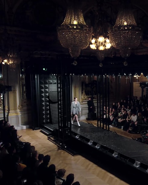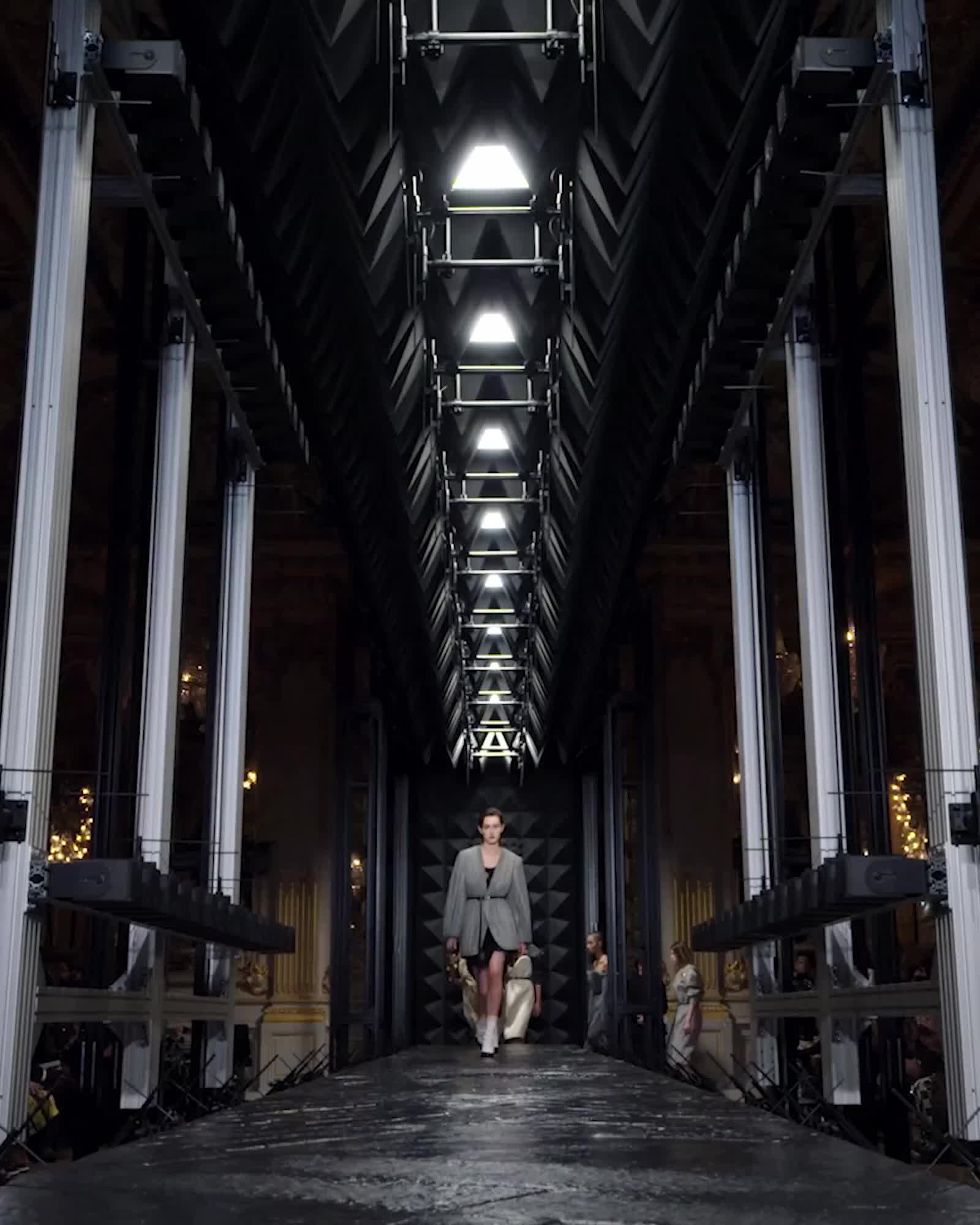 オルセー美術館で発表された、2023秋冬ウィメンズ・コレクション。ニコラ・ジェスキエールは、フランスを代表するアーティストのフィリップ・パレーノとサウンドデザイナーのニコラ・ベッカーとのコラボレーションで、没入型の舞台演出をイメージ。幾何学的なライン、パリの街並み、そしてキュレーションされたサウンド体験が特徴的な舞台セットなど、デザイン全体がパリに命を吹き込みました。モデルの鼓動や足音を増幅させたライブサウンドと街の音の融合は、ショーと周囲の環境との間に対話を生み出しました。