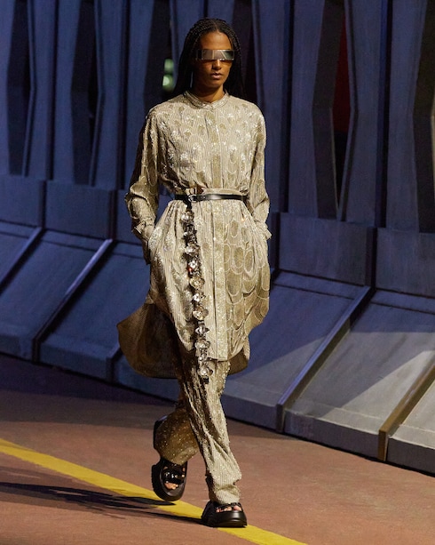 大胆な折衷主義を体現──タイムレスなシルエットを予想外かつ構造的なバリエーションで再構築。光沢感のある装飾や特徴的なプリント、メゾンのシグネチャー・モチーフを組み合わせ、さりげない再解釈を施しています。