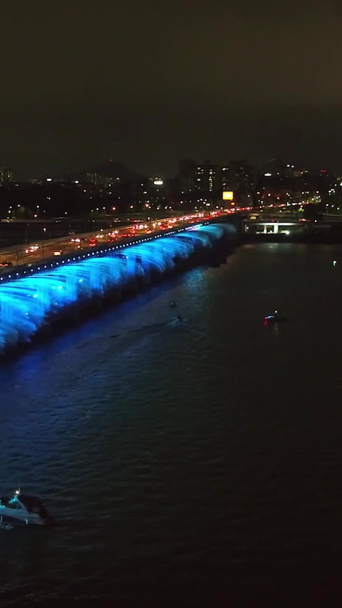 Netflixオリジナルシリーズ『イカゲーム』の監督を務めたファン・ドンヒョクがソウルの象徴的な潜水橋(チャムスギョ)に没入感のあるセットをデザイン。そこに投影される光は、過去、現在、未来が調和して共存する大都市の力強いエネルギーを映し出します。