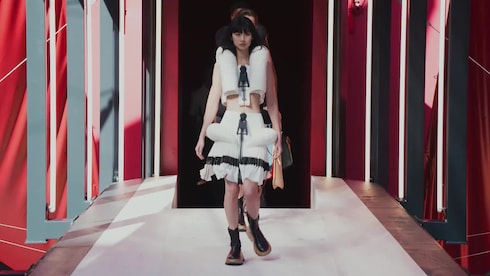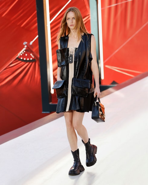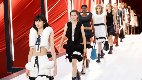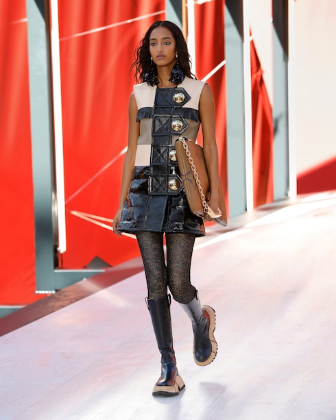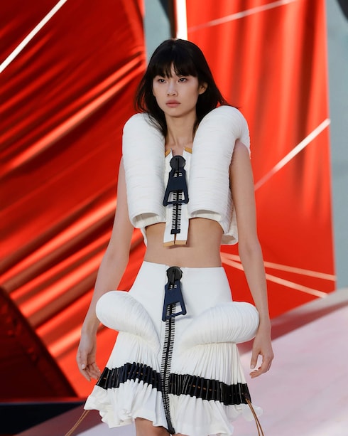 フェミニニティにスポットライトを当てた2023春夏ウィメンズ・コレクション──限りなく大きいものと小さいものが溶け合うシルエットは、比率を再評価するスタイリングの試みです。ルイ・ヴィトンのDNAに深く刻み込まれたメゾンのシグネチャーは、不均衡な性質であり、コレクションを語る上で不可欠なもの。スケールを再解釈したアウトサイズなジッパーやスナップボタン、クラスプはベルトのバックルに、そして1枚のレザーは衣服へと変貌を遂げます。