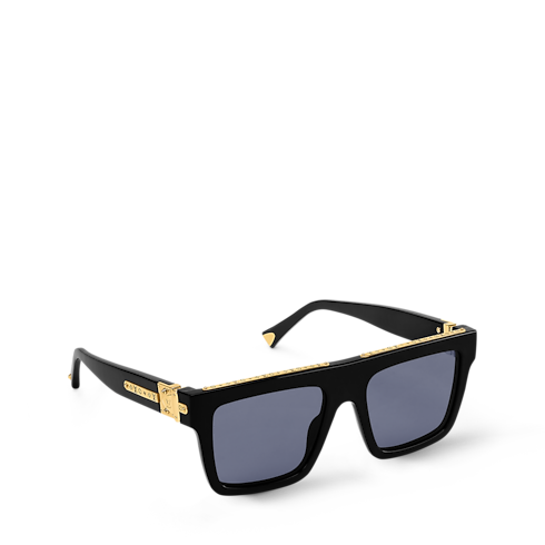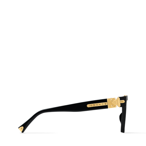 光沢のあるアセテートを使用したイタリア製の「サングラス・1.0 ミリオネア ラージスクエア」。今シーズンは洗練されたブラックフレームと都会的なシルエットを融合したラージスクエアのシェイプで登場します。ゴールドカラーのバーをトップにあしらったフラットなブロウラインや、モノグラム・パターンを刻印したアクセサリーを施したテンプルとSロックがメゾンのトランクの金具を彷彿とさせます。