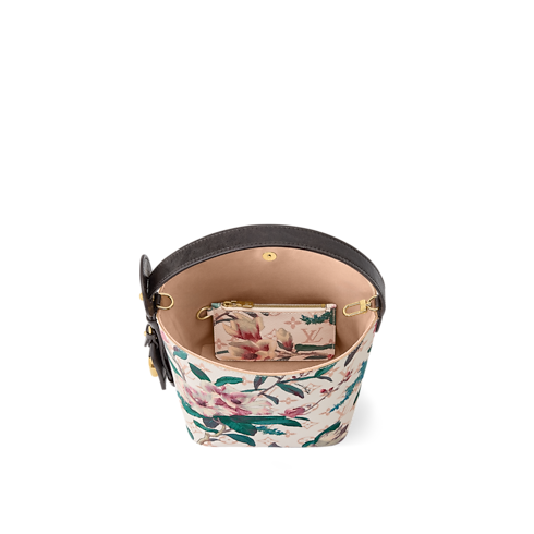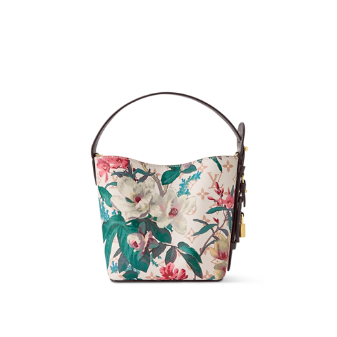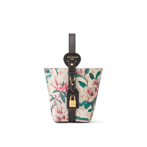 「モノグラム・エデン」コレクションの一部として再解釈された、鮮やかなフローラル・パターンが際立つモノグラム・デュンヌ キャンバスの「オール・イン BB」。クラシックなバケットシェイプにレザートリミングを施し、ゴールドカラーのパドロック(錠前)やシグネチャーのLV ネームタグでアクセントを添えました。内装には取外し可能なファスナー式ポーチを配し、スマートフォンや財布、鍵などを収納できる充分なスペースを備えています。
