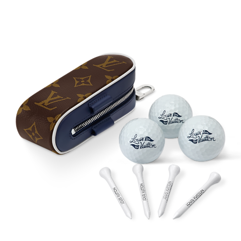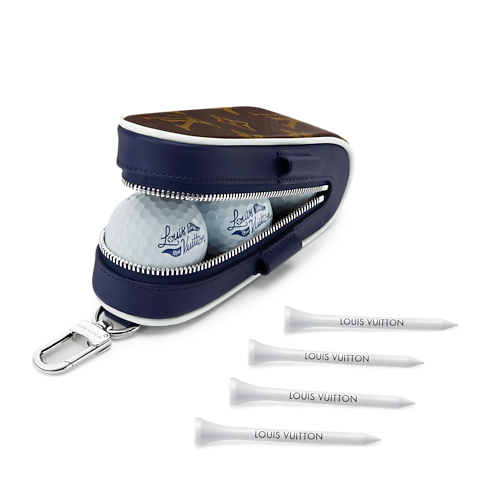 ラウンドに気品溢れる魅力を添える「セット ゴルフ・アンドリュース」。モノグラム・キャンバスのケースに、「LV ゴルフ」コレクションのエンブレムをブルーであしらったゴルフボール、そして「Louis Vuitton」ロゴ入りのティーをセットしました。エレガントなシルバーカラーのメタルフックでバッグやベルトループに取付けて、フェアウェイの必需品をスマートに携帯できます。