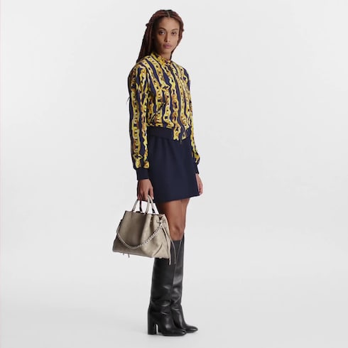 さりげないエレガンスが薫る、しなやかなグレーのマヒナ・レザーで仕上げた「ベラ・トート」。レザーに繊細なプリーツとドレープを施し、ジュエリーのようなチェーンをあしらいました。定番のバケットバッグのデザインにトートバッグの要素をプラスした、普段使いにぴったりのスタイリッシュなアイテムです。