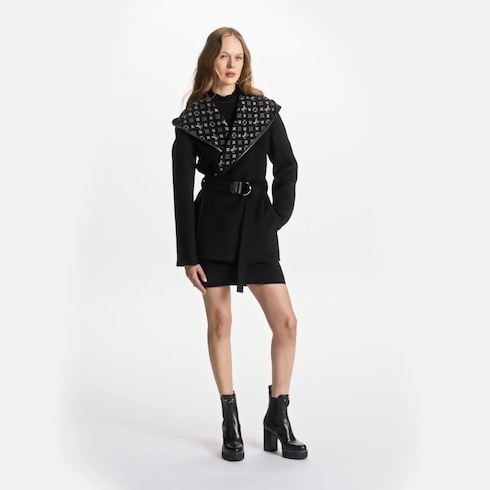 今シーズンに相応しくフレッシュな色合いでアップデートした、ラップスタイルのシックなピーコート。コレクションを象徴する「Louis Vuitton Paris」シグネチャーのベルトが、モダンな雰囲気を演出します。柔らかく軽量で暖かなウールとシルクの混紡素材をダブルフェイスに仕立て、快適性を高めるたっぷりとしたフードをあしらいました。内側を彩るジャカード織りの技法で表現したアイコニックなモノグラム・パターンも魅力です。