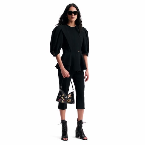 スムースレザーを使用した印象的なデザインの「ベルリン アンクルブーツ」。官能的なオープントウや前面上部まで編み上げられたフルレングスのシューレース、その留め具となるハイキングブーツスタイルのフックが特徴です。高めのブロックヒールとモノグラム・キャンバスのバックループで仕上げました。