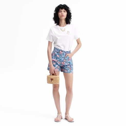 構築的なコットンジャージーで仕立てたタイムレスな定番Tシャツ。クラシックなフィット感を実現するショートスリーブとシックなLV チェーンの装飾をあしらったリブ編みのクルーネックを配し、カジュアルで着心地のよい1着に仕上げました。胸元にはさりげないディテールとして今シーズンならではのロマンティックなアングレーズ刺繍でLV イニシャルを施し、シグネチャータッチをプラス。