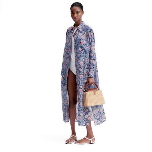 手作業で精緻に編み上げられたラタン(籐)の「カプシーヌ BB」。それぞれ完成までに2日間を要します。リゾート感のあるデザインは1892年に登場したメゾンの「ピクニック・トランク」を彷彿させ、開くとパターン入りのライニングが現れます。フラップを内側に折り込んでも、外側に出しても使用でき、毎日の必需品が収まるサイズに仕上げました。シグネチャーのLV イニシャルが華やかさをプラス。