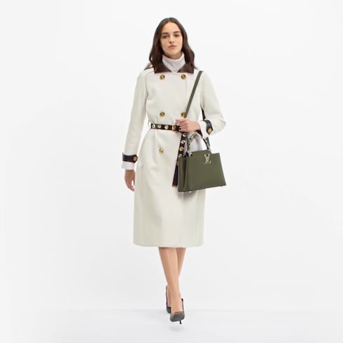 ルイ・ヴィトンが最初の店舗を構えたパリの通りの名を冠した「カプシーヌ MM」。メゾンと同じくタイムレスな魅力を放つ、シックで洗練されたバッグです。フルグレインのトリヨンレザーや貴重なパイソンレザーを使用し、LVイニシャル、特徴的なサイドリング、フラップの控えめなモノグラム・フラワーなどのディテールがメゾンの伝統を感じさせます。トップハンドル、取外し可能なストラップ、シグネチャーのフラップをアレンジして、装いや気分に合わせたさまざまな持ち方をお楽しみいただけます。