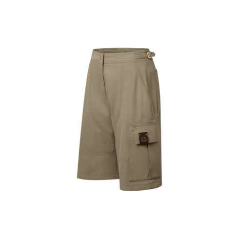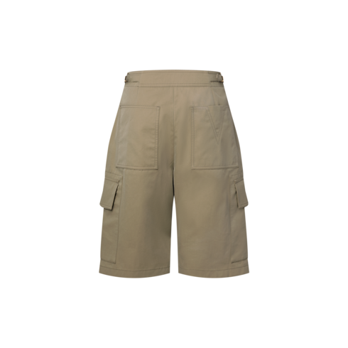 カーゴパンツのユーティリティスタイルを彷彿させるバミューダショーツ。脚の外側には大きめのフラップポケットを、ウエストバンドには調節可能なタブをあしらいました。柔らかなコットンツイルで仕立てられ、同系色のトップステッチが構築的なシルエットを際立たせるデザイン。モノグラム・キャンバスのパッチがアクセントを添えています。