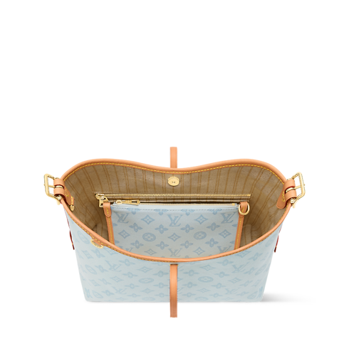 ルイ・ヴィトンのモノグラム・キャンバス誕生130周年を讃え、華やかなモノグラム・オリジン ブルー クーリエの色合いで仕上げた「キャリーオール PM」。オリジナルのパターンをヴィンテージ風にアップデートしたモノグラム・オリジン キャンバスに、なめらかなレザートリミングを施し、フェスティブムードを盛り上げる限定ネームタグでアクセントを添えました。タブレットを収納できる万能なデザインで、小物用の取外し可能なファスナー式ポーチを備えています。
