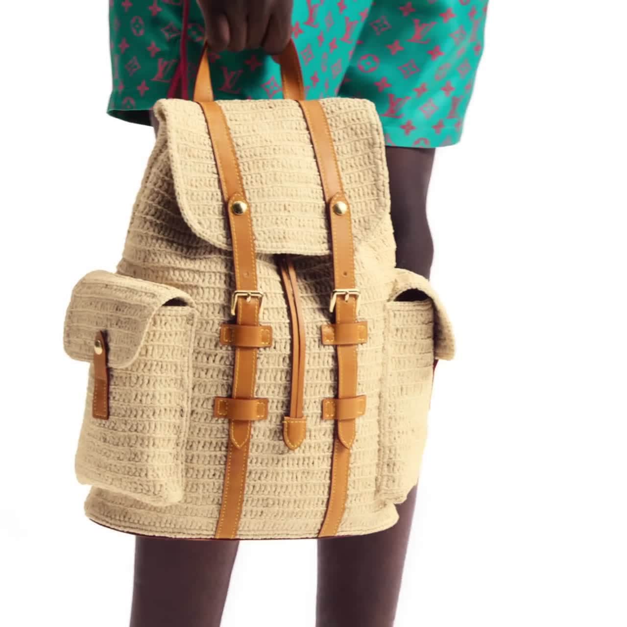 メゾンの巧みな加工技術を駆使したラフィア(ヤシ)製のバックパック「クリストファー PM」。成形が難しい繊細なファイバーでバッグ「クリストファー」の特徴あるデザインを表現しました。手作業で編み上げたアイテムは、1つ1つがユニークな仕上がりに。2つのサイドポケットとヌメ革のトリミングの組み合わせが夏らしい雰囲気を演出します。