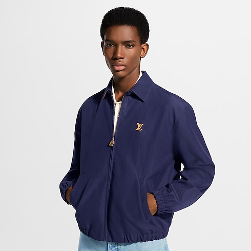 コットンやウール、シルクの混紡素材をタイムレスなシルエットに仕立てた、ダークブルーのコーチジャケット。胸元には、メゾンのレザーグッズの伝統にオマージュを捧げるヌメ革風のLV イニシャルのパッチをあしらいました。ミニ・モノグラム パターンをエンボス加工で施したスエードレザーが襟裏にアクセントを加え、ライニングに配したモノグラム・モチーフが華やぎを添えます。揃いのショーツと合わせればスマートなセットアップに。