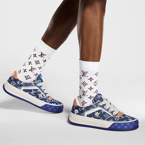 モノグラムに遊び心溢れるひねりを加えた「ソックス・カラフル モノグラム」。鮮やかなカラーパレットが際立つソックスは、コットン混紡の軽やかな履き心地も魅力。イエローやパープルなどダイナミックな色合いで表現されたメゾンのモノグラムを、ふくらはぎからつま先まで繰り返しあしらいました。足裏にはそれぞれ「LOUIS VUITTON」シグネチャーをプラス。