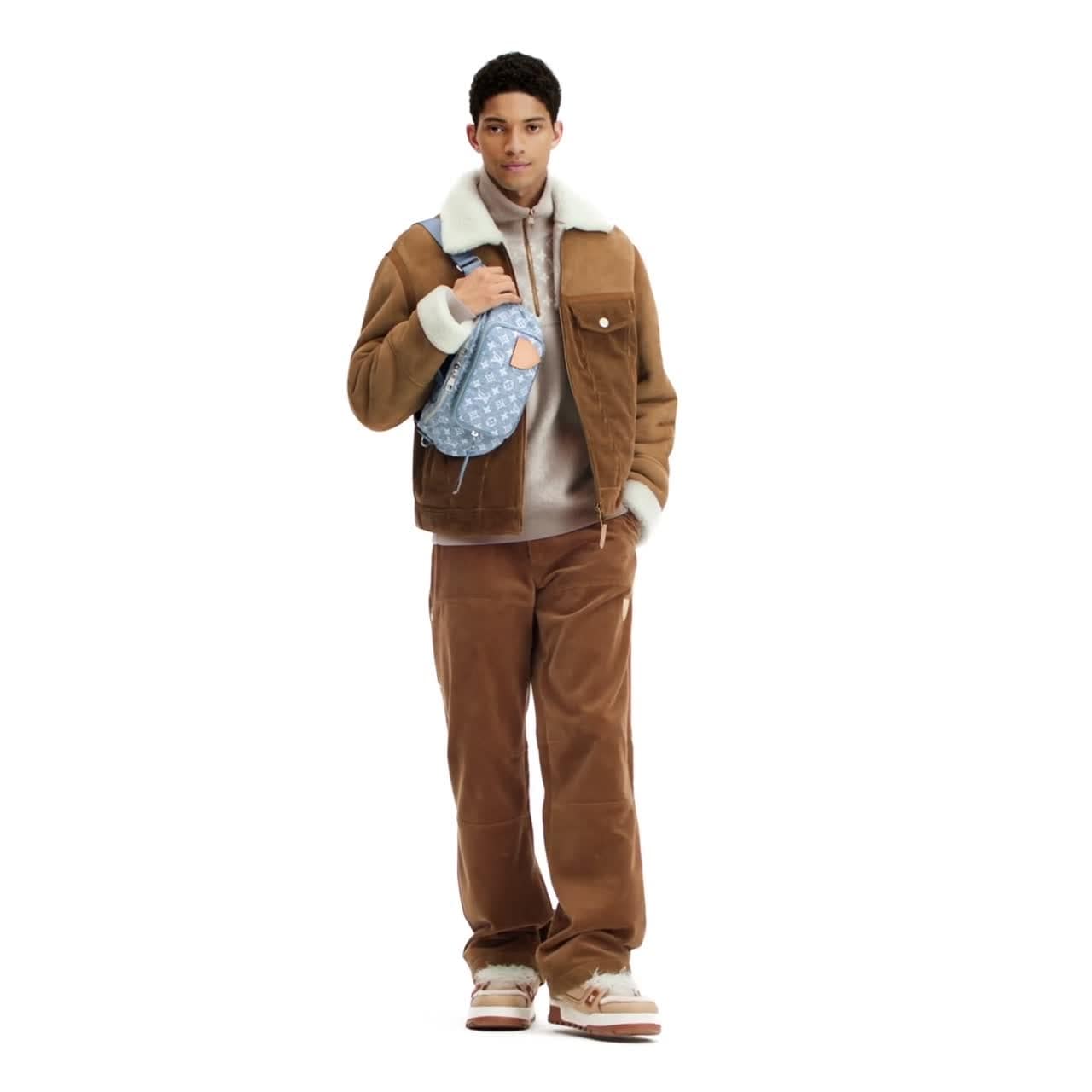 カジュアルなシルエットにラグジュアリーなひねりを加えた、着心地のよいシアリングトラッカージャケット。シックなアフタースキーのひとときを演出するアイテムです。襟、ヨーク、袖はすべて柔らかなシアリングで、ボディは太畝コーデュロイで仕立てました。ルイ・ヴィトンのサヴォアフェール(匠の技)が息づくアイコニックなディテールとして、袖や背中、レザーのファスナー引き手にヌメ革をあしらいました。揃いのパンツを合わせて、セットアップとしても楽しめるアイテム。