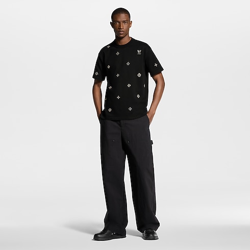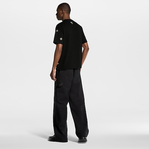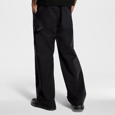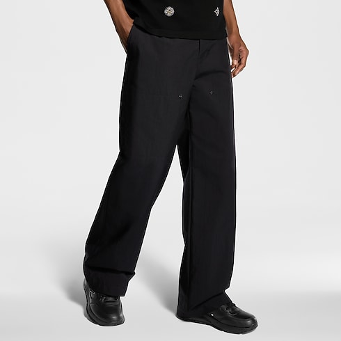テクニカルコットンリップストップ素材で仕立てた、リラックス感とカジュアルな印象を醸すブラックのカーゴパンツ。夏にふさわしい軽やかさと爽やかさが魅力の1着です。実用的なディテールとして、膝上のポケットにはモノグラム・フラワーのリベットをさりげなくあしらい、後ろ左ポケットにはモノグラムを施したグログランリボンのハンマーループを添えました。本コレクションのブラックアイテムと合わせれば、モダンで都会的なルックに。