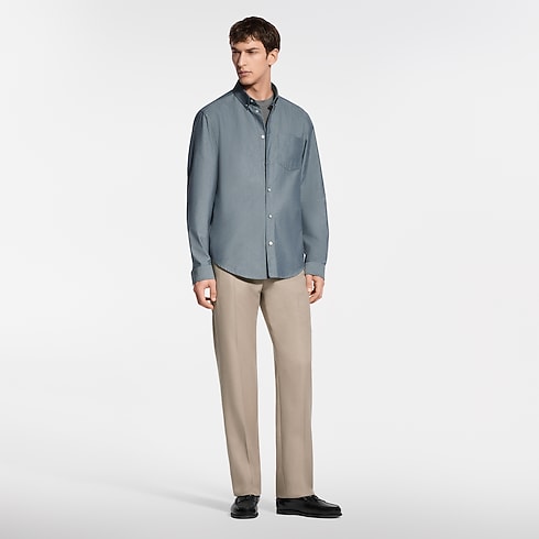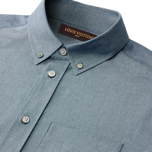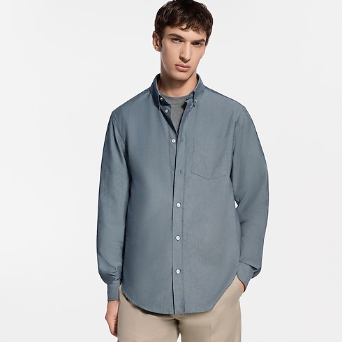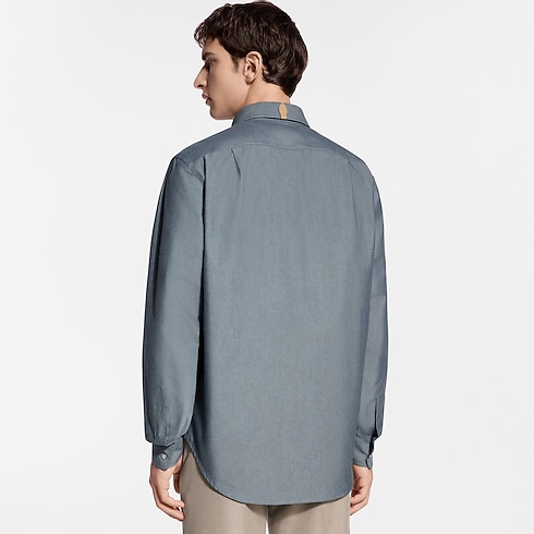 コットンシルクのシャンブレー素材で仕立てたロングスリーブシャツ。快適な着心地と優れた通気性に加え、なめらかな質感と光沢感を実現しています。トップボタンにはLV ステッチを施し、背面の襟にはメゾンの旅の伝統を想起させるヌメ革のタブをあしらいました。美しいドレープを描く素材とボタンダウンの襟が生み出すカジュアルなスタイルが、春夏の装いに現代的なアクセントを添えます。