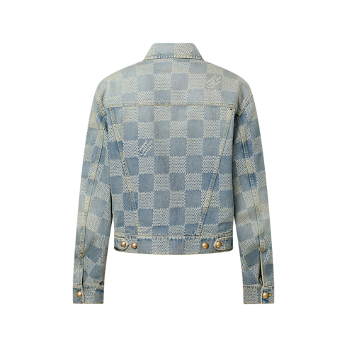 「Marque L. Vuitton Déposée」シグネチャーを組み合わせた3D ダミエ・パターンのジャカードが柔らかな質感をもたらす、定番シルエットのデニムジャケット。インディゴのウォッシュデニムにイエローのトップステッチを配し、エイジング加工を施したコッパーカラーのパーツとドーム型ボタンを添えました。ミックス & マッチしやすいワードローブのマストハブアイテムを同シリーズのジーンズと合わせれば、シグネチャールックを楽しめます。