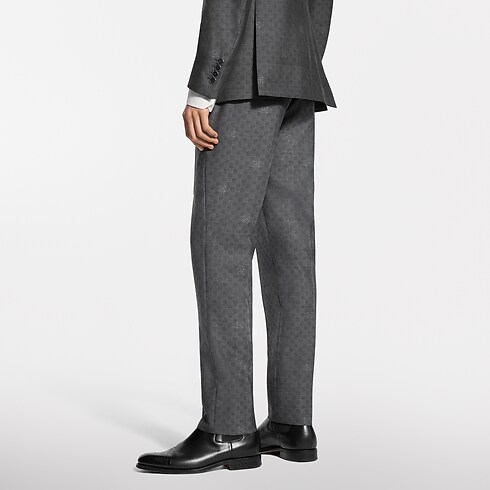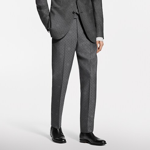 タイムレスなダークグレーカラーでエレガントに仕立てた、この魅力的なシガレットパンツは、フォーマルなビジネスシーンに理想的です。上質なウールは、洗練されたミニ・ダミエシード モチーフのトーン・オン・トーンジャカードに織り込まれています。このパターンは、柔らかなまだら模様のモノグラムフラワーを取り入れ、織り込まれたLVラベルが後ろのウエストに施されています。お揃いのジャケットと合わせれば、落ち着いた雰囲気の洗練されたスーツになります。