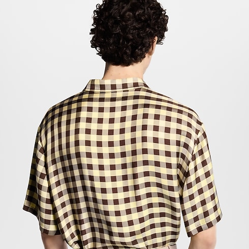 大胆でグラフィカルなスタイルが春にふさわしい爽やかなショートスリーブシャツ。なめらかなクレープツイル素材で仕立て、ヘリテージブラウンと淡いバニライエローのギンガムチェックが特徴です。胸元のポケットにはレザーのシグネチャーパッチを添え、パール風ボタンが光沢感のあるアクセントをプラス。タイムレスな定番アイテムに鮮やかなひねりを効かせた印象的な1着。