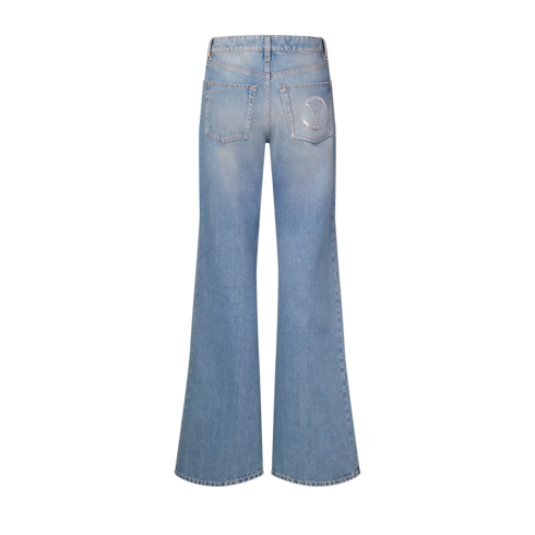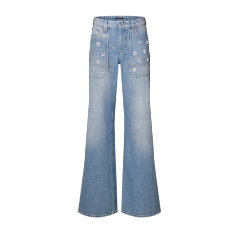 今シーズンならではのコードでシックなひねりを加えたカジュアルなジーンズ。ライトブルーデニムをスリム フィットに仕立て、イエローのトップステッチでコントラストを効かせたクラシックで構築的なシルエットに。スパンコールのLV サークルのディテールが、バックポケットやオーバーサイズのユーティリティスタイルのフロントポケットにメゾンならではのきらめきを添えています。