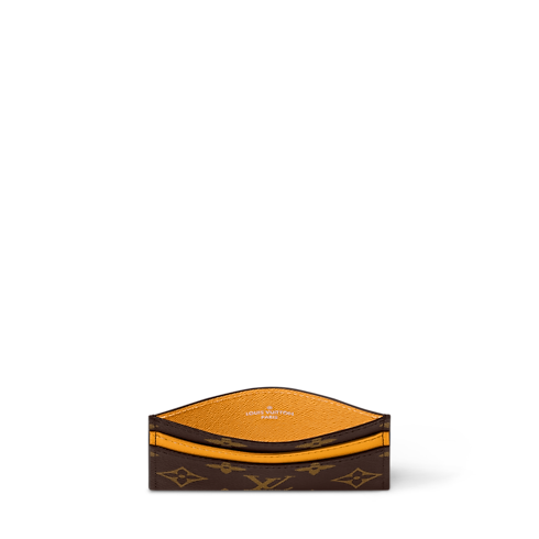 メゾン定番のキャンバスの1つであるモノグラム・マカサーで仕上げた端正な表情のカードホルダー。さりげないカラーアクセントが魅力です。上部にあしらった染色したカウハイドレザーのバンドと同系色のライニングが、意外性のあるひねりをプラス。4つのカードスロットに加え、クレジットカードや交通系ICカード、名刺などを収納できるセンターポケットを備えています。
