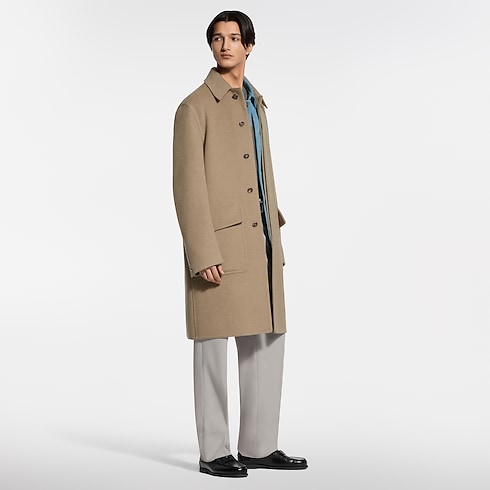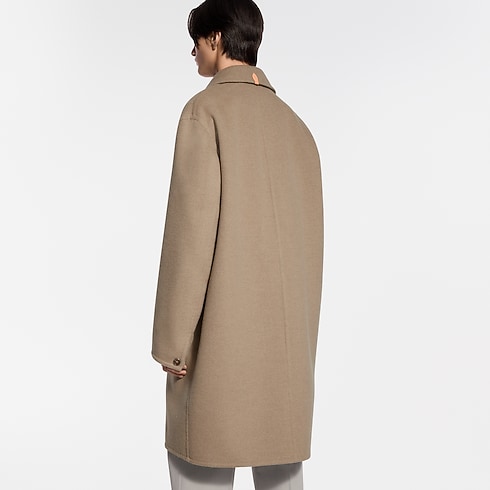 タイムレスなキャラメルカラーのカーコート。起毛加工を施したカシミヤのダブルフェイス素材により、この上ない柔らかさと暖かさを実現しました。ライニングのない流れるようなシルエットに仕上げた、エフォートレスでエレガントなアウターレイヤーです。トップボタンにはLV ステッチを、背面の襟にはヌメ革のタブをあしらい、ピックステッチでサートリアル(仕立て)の雰囲気を添えました。