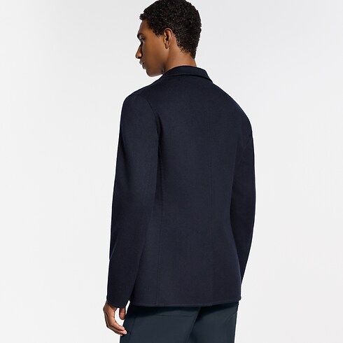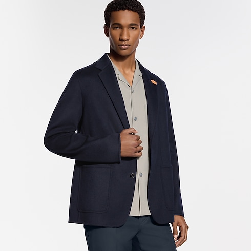 ウールとカシミヤの混紡素材で仕立てたネイビーブルーのブレザー。暖かさと耐久性を兼ね備えた1着です。袖には着脱しやすいシルクのライニングがあしらわれ、洗練されたダブルフェイス素材がライニングのない軽やかなシルエットとエフォートレスなエレガンスを演出。左のラペルに配したヌメ革のシグネチャータブが、季節を選ばず活躍する上品なアイテムに控えめな印象を添えます。