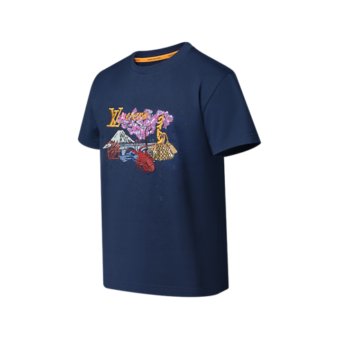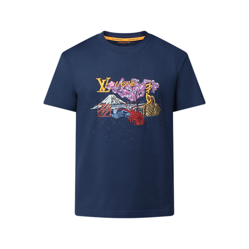ディープネイビーのオーガニックコットンTシャツ。2025秋冬ファッションショーに登場したファレル・ウィリアムスとNIGO®のコラボレーションによるモチーフを刺繍であしらいました。さまざまなステッチを駆使して鮮やかに描かれた風景は、NIGO®の故郷である日本の伝統的なモチーフと遊び心溢れるメゾンのシグネチャーを組み合わせたもの。同モチーフの下に同系色のモノグラムを刺繍で配した、リッチな質感の1着です。
