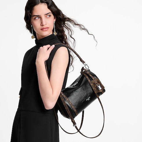 タイムレスなブラックの色合いで仕上げた、「エクスプレス PM」。ロックンロールから着想を得たモノグラム・サガのシグネチャーが際立つデザインです。カーフレザーにカウハイドレザーのトリミングを施し、内装にはメゾンを象徴するモノグラム・パターンのライニングをあしらいました。シルバーカラーで仕上げたアイコニックなキーベルとパドロック(錠前)は、ファスナー引き手に付け替えて、異なるスタイルを楽しめます。