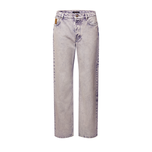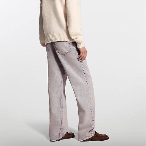 テキスタイルにおけるインドの伝統的な天然染色技法から着想を得た、バイオレットの色合いのデニムスケートパンツ。色褪せたようなヴィンテージの風合いが美しい2026春夏ファッションショーのアイテムです。エイジング加工を施したゴールドカラーのメタルがボタンやビス(鋲)を引き立て、ヌバックレザーのシグネチャーがチケットポケットやジャクロンパッチを華やかに彩ります。揃いのジャケットと合わせれば、カジュアルなシルエットにダンディなひねりを加えた装いに。