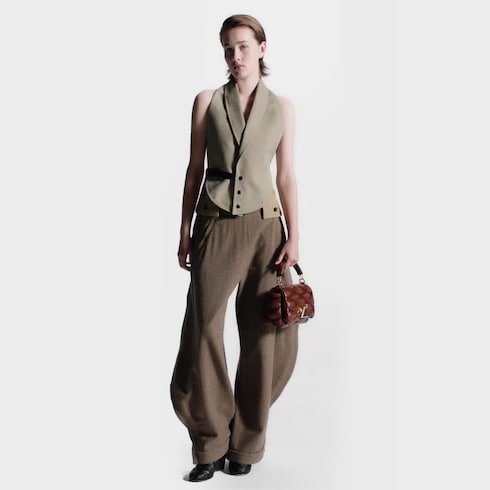 ニコラ・ジェスキエールによる新しい技法でアレンジしたバッグ「GO-14 MM」。キルティング加工を施したパッド入りのラムレザーを手作業で洗練されたトーステッドカラーに仕上げ、フューチャリスティックな魅力を演出しました。トップハンドルと調節可能なチェーンはいずれも着脱でき、さまざまな持ち方を楽しめます。メゾンならではのエンブレマティックなLV ツイストロックをあしらいました。