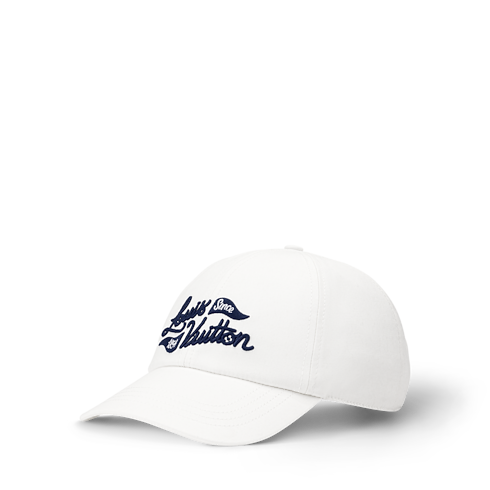 明るいホワイトが、グリーンで過ごす1日を爽やかに演出する「ゴルフキャップ」。フロントパネルには、深みのあるブルーで「Louis Vuitton Since 1854」のエレガントな手描き風のロゴと、三角形のゴルフフラッグが刺繍で施されています。背面のストラップには、「LOUIS VUITTON」の刻印入りスクエアバックルを配し、快適さとエレガンスをカスタマイズできるデザインに仕上げています。