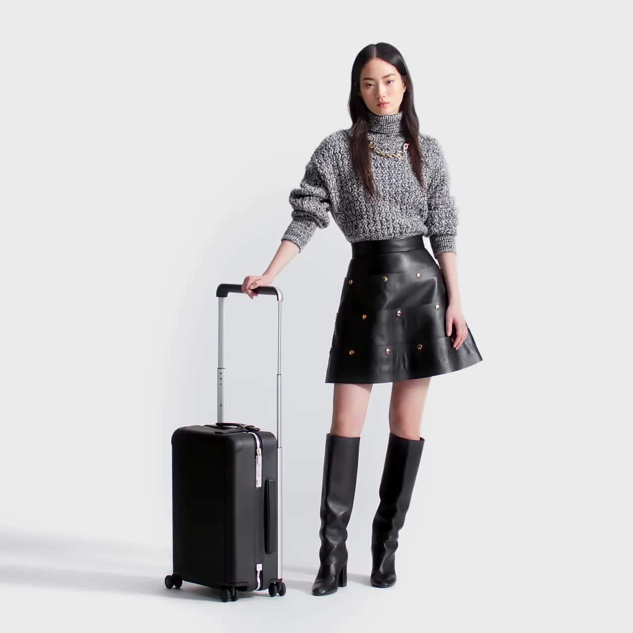 同世代のクリエイターの中で最も影響力のあるインダストリアル・デザイナー マーク・ニューソンによって考案された「ホライゾン 55」。時代を先取りしたラグジュアリーなデザインの4輪トロリーは、軽量で機内持ち込みも可能です(航空会社や使用する機材によって異なります)。調節可能な伸縮式キャリーハンドルを外側に施すことで、完全にフラットな内装を実現。最新のTSAロックから全方向移動が可能なキャスターまで、すべてのディテールにおいて革新性と軽量化にこだわり、ルイ・ヴィトンならではの匠の技が息づいています。コンパクトなデザインでありながら抜群の収納力を誇ります。