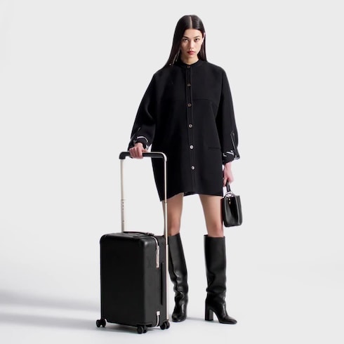 エレガントなブラックのなめらかなレザーを使用し、ルイ・ヴィトンのアイコニックなモノグラム・ジャイアント パターンをエンボス加工で施して仕立てた「ホライゾン 55」。機内持ち込みが可能なサイズ(航空会社や使用する機材によって条件は異なります)で、ワイドなハンドルと4つのダブルホイールによる高い可動性も魅力です。実用的でフェミニンなトラベルバッグを、メゾンならではのスタイルで仕上げました。