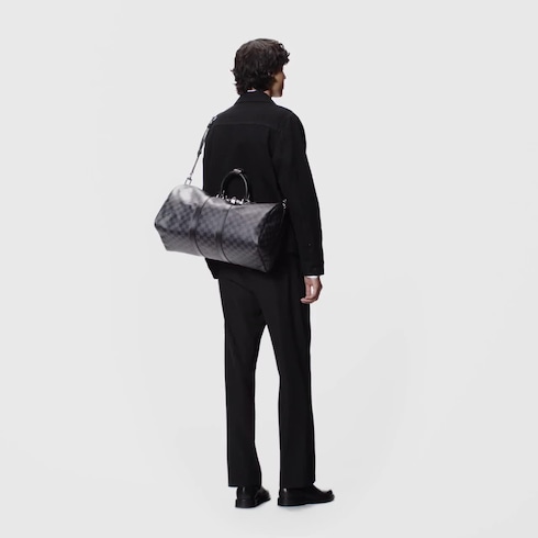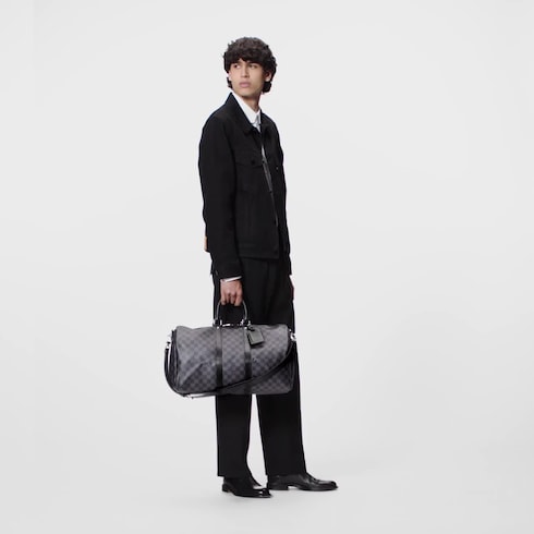 ルイ・ヴィトン定番の旅行用バッグ「キーポル・バンドリエール 45」。肩に掛けて快適に持ち運べるレザーストラップ付きです。