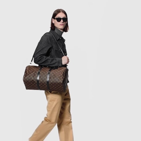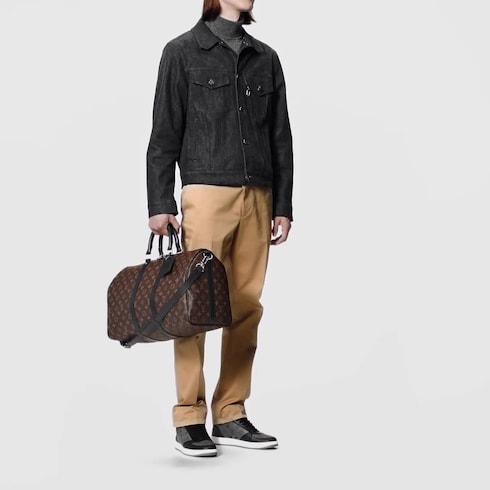 旅行だけでなく、レジャーやビジネスシーンでも活躍する、収納力抜群の「キーポル・バンドリエール 45」はモノグラム・キャンバスにブラックレザーがアクセントになった都会的でファッショナブルなデザイン。取り外し可能なショルダーストラップもついて機能的。