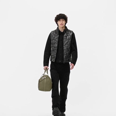 アイコニックなバッグを、ルイ・ヴィトンの卓越したレザー加工技術にオマージュを捧げる特別な素材であるアエログラム・レザーでアップデートした「キーポル・バンドリエール 50」。この上なく上質なカウハイドレザーをエレガントなカーキに染め上げて仕立て、メゾンの旅の伝統から着想を得たレザータグやジャカードのストラップなどのディテールを散りばめました。週末の小旅行やキャビンバッグとしても活躍する、実用性の高いバッグです。