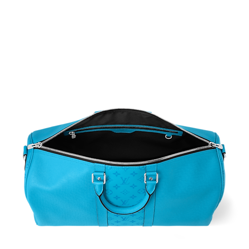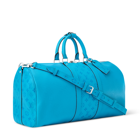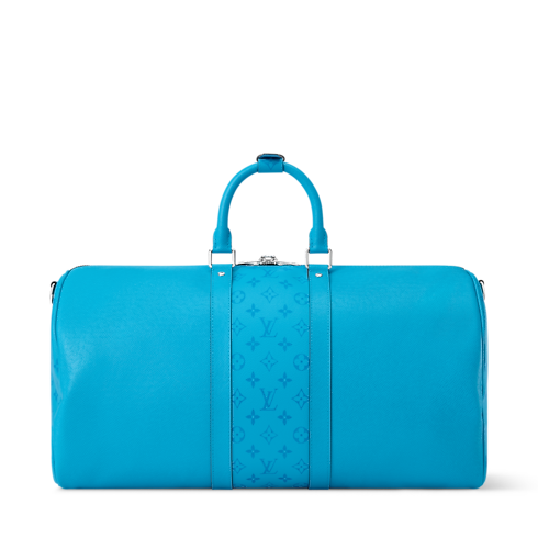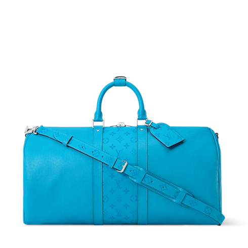 タイガ・レザーと同系色のモノグラム・キャンバスが、夏らしい雰囲気をもたらす「キーポル・バンドリエール 50」。ネームタグと取外し可能なストラップにも、モノグラム・パターンがあしらわれています。2本のトップハンドルとストラップにより、多彩な持ち運び方を実現。機内持ち込み可能なサイズで、週末のお出かけにもぴったりのアイテム(但し、航空会社・機材によって客室持ち込み手荷物の条件は異なる場合あり)。